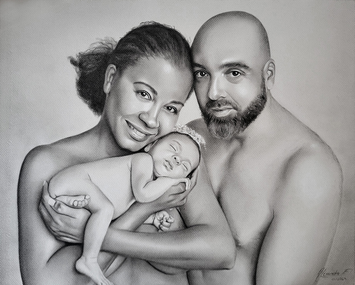 Regalo de recién casados!! Técnica mixta con pastel negro y blanco